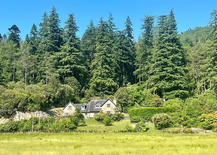 The 3-bedroom Eckford House Villa, located 14 minutes' stroll from Benmore Botanic Garden, invites guests to relax in a hot tub. Featuring a terrace, the property is situated a few minutes' drive from Puck's Glen.